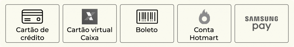 A plataforma utilizada para compra é a da Hotmart, referência no nicho de produtos online.