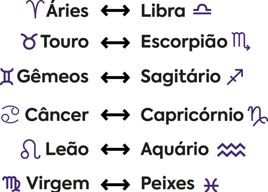 Dessa forma, os signos estão dispostos em 6 eixos opostos