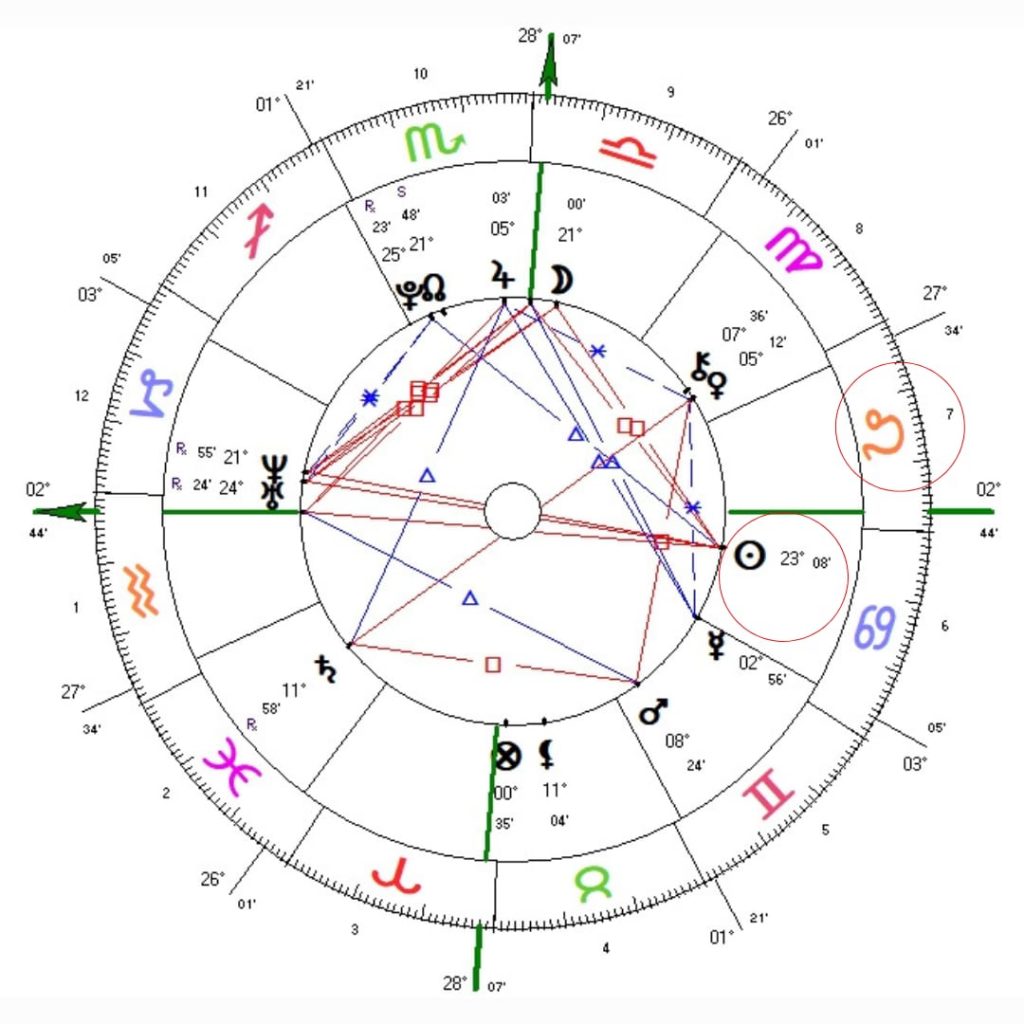 Juntamente com o signo, vamos observar o planeta regente de Leão, o Sol, que é o centro organizador da nossa personalidade. Assim, por mais que o Sol não esteja na casa 7, ele atua sobre aquela área da vida.