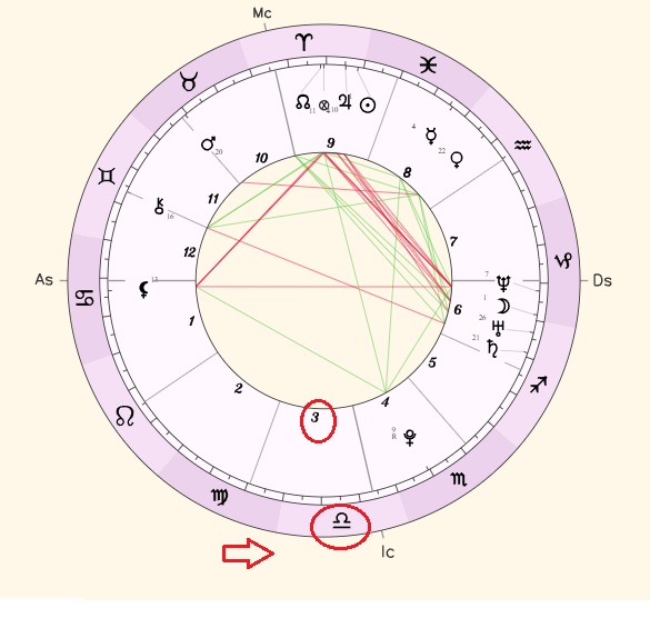 - Procure no seu mapa o símbolo do signo de Libra. Depois, veja em qual casa esse signo está. No exemplo abaixo, Libra está na casa 3 do mapa astral.
